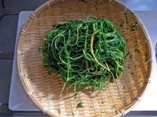 1 間引きニンジンの葉(15センチくらいが柔らかくボリュームがあるのでお奨めです。)