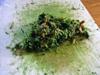 3 2にむきクルミを置き包丁で刻むようにたたきます。
