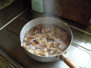 1 輪切り干し大根を水から煮て、5分間ほど沸騰させます。