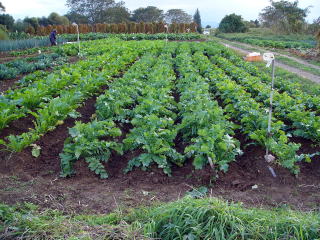 中央3畝がサグヅガゲ後のタクアン大根。右3畝は青首大根、