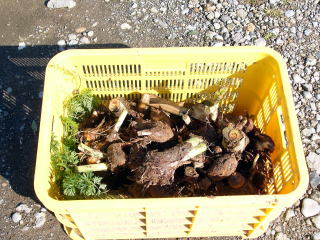 里芋が美味しかったので芋煮汁を食べたくなり植えつけ半分の里芋収穫をした。