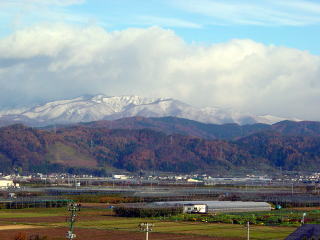 葉山に初雪。葉山の「雪が降って融け」が3回繰り返すとここおらホの里にも雪が積もると言い伝えられている。