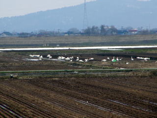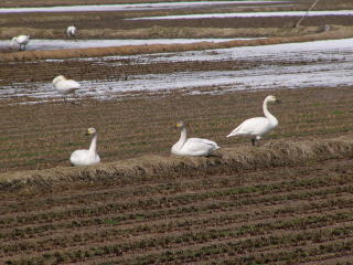 白鳥たちも北国への出発準備です。落ち穂でも食べているん