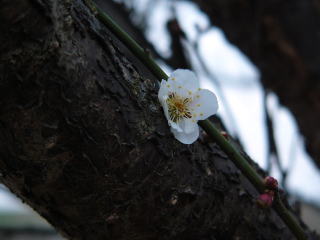 梅一輪。開花確認です。。可憐で綺麗です。