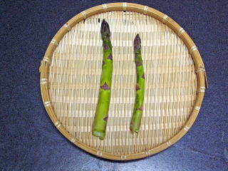 アスパラ初収穫。たったの2本でしたが仏前に供えました。