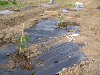 おらホでは強風に苗が折れないように工夫しているつもりだ。