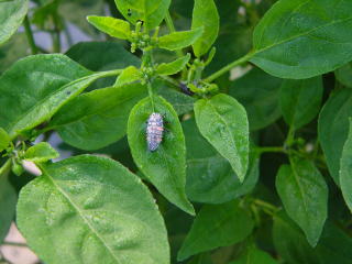 これがテントウ虫?の幼虫。ナスによく食いつきます。写真