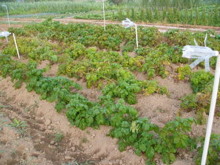 消毒後のジャガイモ。若干葉っぱに勢いが戻ったような