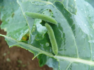 体長2センチほどの青虫(モンシロチョウの幼虫?)