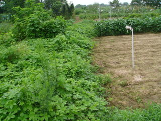 暑い一日、雑草取りと秋野菜の準備耕耘に精を出しました。