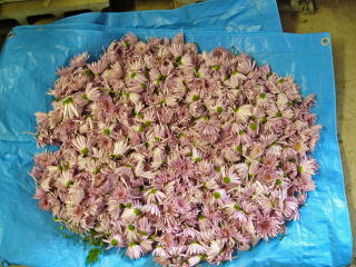 食用菊モッテノホカの収穫と山形青菜(せいさい)の1本立ち間引き
