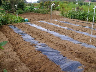 タマネギ定植の準備作業「マルチ張り」と大根の間引き作業