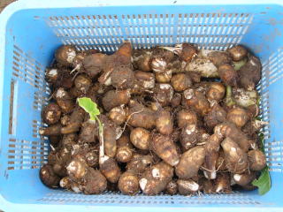 里芋、今年も2年連続の不作であった。原因は分からないが種芋を植え付けてから芽が出たと思ったら殆ど腐れてしまった。知人曰く「肥やしがれ」。床を作るとき肥やしっけがありすぎると幼葉がデ内に根草れをするのだという。来年は別の箇所に植えてみたい。