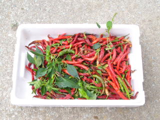 鷹の爪の収穫。白菜、大根漬けのスパイスに重宝します。