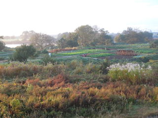 写真中程緑の部分がおらホの家庭菜園。秋も深まってき