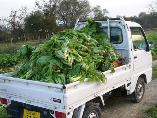 収穫した山形青菜(せいさい)。これで作付けの半分の収穫