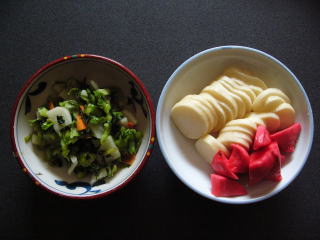 左、オミヅゲ。右大根ヅゲと赤かぶの酢漬けです。200812.14 17:00 撮影