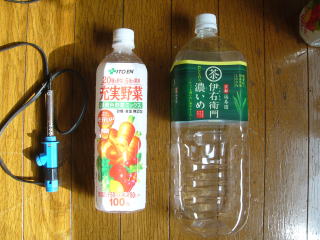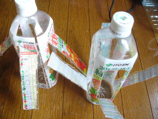 材料はペットボトル。商品シールを剥がさずそのまま利用