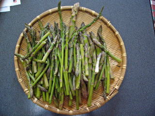 2回目のアスパラ収穫をした。3年目のアスパラ、まだ細めだが家族内で食べるには十分だ。