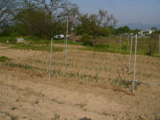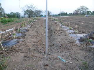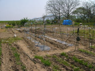 キュウリ用のネット支柱も準備完了です。キュウリは5月3日