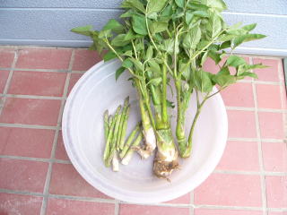 今日の収穫、山ウドとアスパラガス。天ぷらの材料にうっ てつけ?。 2009.05.06 12:00 撮影