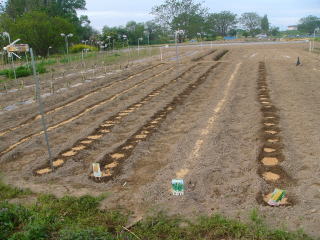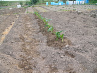 今日も朝早くから水かけです。今日で10日は雨が降っていない。種蒔きから作物は影響甚大でないが、苗定植の作物は厳しい状態だ。水代もバカにならないのでローテーションを組んで水かけしている。そして、ここで雨が降ると雑草も我先にと芽出しする。