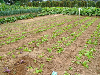 気がかりだった秋大根と山形青菜の間引き作業をした。種を蒔くときどうしても厚めになりがちで、仕方がないことである。間引きした大根、青菜は即席漬け物、おひたしに出来るのでこれを目当てに厚く種まきする人もいると聞く。しかし、細かな作業なので以外に重労働なので、できれば間引きしないほうが良いと思う。