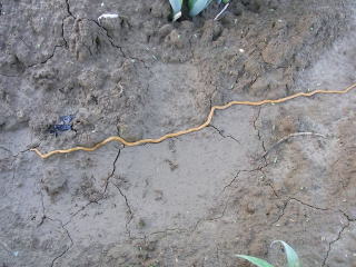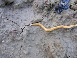 早朝の下見をしたところ偶然に見たこともないワームを発見!!長さは50センチくらいで地面を這っている。ゴカイのようなワームである。