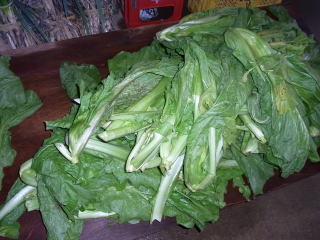 水洗いした青菜。茎の部分を水洗いするだけで十分でした。