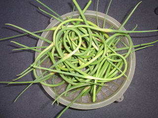 ニンニクの芽を収穫した。油炒めにして酒の肴となった。