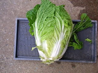 白菜が結球しているのを確認。ならばとお試し収穫をした。身が引き締まってまずまずの出来である。