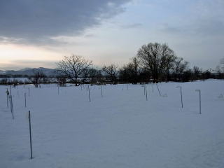 約3ヶ月ぶりのおらホの家庭菜園です。雪は固雪でぬかるみま せん。積雪50センチくらいです。 2013.03.13 7:14 撮影