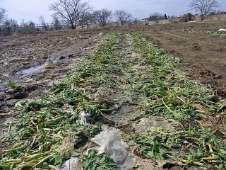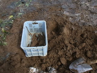 数株掘り起こしてみましたが、ぬかるみがひどいので中止です。 姿格好は不格好そのもの。根曲がりゴボウ?。 2013.03.24 10:34 撮影