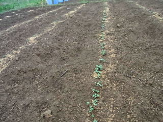 規則的にここ数日間雨が降って、発芽するのに条件が整っている。気温も高い。 早朝の下見で、大根類の発芽、そしてジ