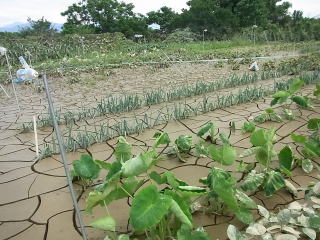 厚さ数センチの泥が残されていました。ネギ、里芋は流されて