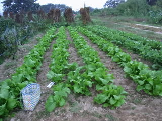 左4畝が青菜、右2畝が秋大根。青菜の間引き収穫をしなければ...。