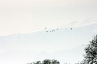 約20羽程度の白鳥を確認できました。編隊飛行、まだヘタで