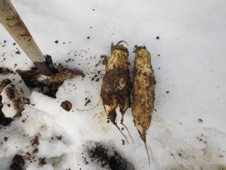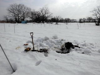 ここ1週間春めいて道路脇の雪も溶けてなくなってきた。久方のぶりにおらホの家庭菜園に足を踏み入れた。積雪も約10センチなので比較的簡単にいき事ができた。