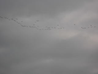 クオー、クオーとの鳴き声。見上げると白鳥の大群。100羽くらい