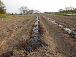 ナガイモはマルチを張ってからの作業なので手間がかかる。残る作業はネギ苗定植、若干の種まきと苗作りである。