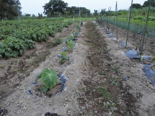 帰宅後、里芋の雑草取りをした。雑草取り後、土を軽く掘り返し鶏糞の追肥である。これに一雨降れば気温も高いのでスクスクと背丈が伸びる。逆に