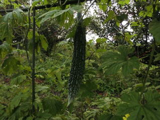 ゴーヤがぶら下がっています。いつの間にか実をつけていまし