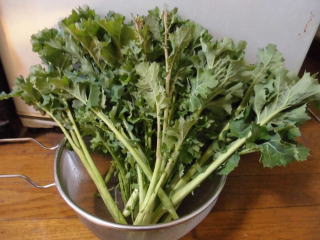 今日の収穫、五月菜(チジミ菜)です。オヒタシニして