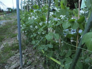 サヤエンドウ、いつの間にか花が咲き、収穫間近となっていました。