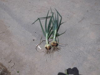 今日の収穫、爲ネギのお試し収穫です。水にさらしサラダで