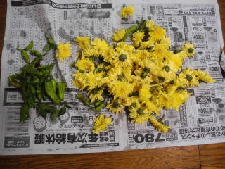 秋もだんだんと深まり、菊の黄色い色も深まってくる。おらホの今年の菊、一気咲きしないので食べる分だけ収獲で