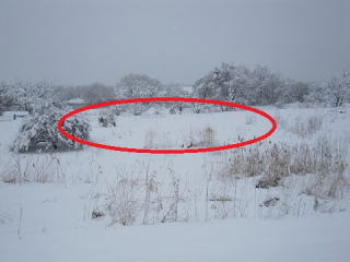 ○内がおらホの家庭菜園。雪原です。約100メートルほどの