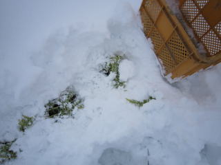 積雪は30センチ程度。手で傷をつけないように掘り起こします。