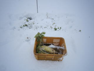 雪中、大根収穫