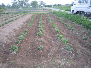 | ジャガイモは1株に拳大のものが5~6個できればベストと考えている。大きくなりすぎると、空洞が出来るようになるし、芽欠きが甘いとピンポン球芋が大量に出来る。これまでの経験から、おらホは若芽は間引きして、2~3本立ちにしている。若芽の大きさに不揃いがあったので、全部作業完了とならなかった。 ナス、1回目の芽欠き作業をした。 ニンジン、ゴボウの芽だしを確認した。 |